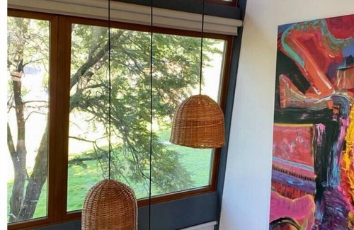 Relájate en esta escapada única y Disfrutá de una verdadera conexión con la naturaleza, reseteá tus sentidos con el canto de las aves, aromas silvestres y amplia vista a las montañas en este gran espacio, ubicado a metros de la playa en el lago Nahuel Huapi... La paz y tranquilidad que brinda este alojamiento, se deben a la distancia con la ciudad de Bariloche. a tres kilómetros de Puerto Pañuelo y de innumerables y extraordinarias playas y senderos que ofrece circuito chico