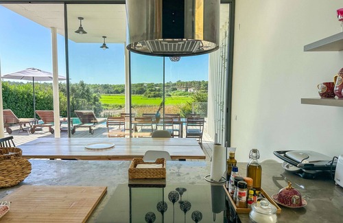 Casa Alfazema is a contemporary house nestled in the center of Carvalhal village where you can walk to the finest shops and restaurants (Fashion Clinic, Stork Club, Sal Burger, 5 sentidos). Only 10 mins by car to Comporta Village, 7 mins to Pego & Carvalhal Beach, and 1h30 to Lisbon Airport. Enjoy the open living area with floor-to-ceiling windows overlooking the rice fields and unwind with a barbecue and Infinity Pool offering stunning rice field views.