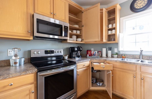 Esta casa de vacaciones tan agradable en High Point te permitirá disfrutar de todo tipo de actividades. El alojamiento dispone de garaje. Además, estarás a 4min en coche de Oak Hollow Lake y a 3min en coche de Sportscenter Athletic Club.