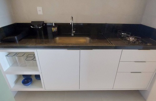 - Cocina con licuadora, sandwichera, cafetera de cápsulas (trae tu cápsula - marca de 3 corazones), refrigerador duplex, termo, anafe de 2 fuegos, horno eléctrico, varios accesorios de cocina