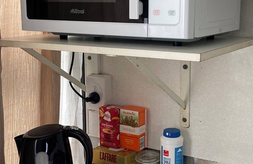 Prepara una comida casera en la cocina básica, equipada con placa de cocina y frigorífico, además de hervidor eléctrico, microondas y utensilios de cocina. El cuarto de baño incluye toallas, papel higiénico y jabón. Y como hay una lavandería en los alrededores, no necesitarás llevarte mucho equipaje. Otras comodidades incluyen ropa de cama, servicio de limpieza disponible a petición, calefacción y cambio de toallas a petición.