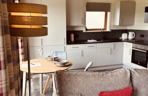 This cosy lodge has a private hot tub on the patio deck, one bedroom with en-suite shower room and a spacious modern open plan dining and kitchen area with lounge and feature woodburning stove. The property has picture window at the dining table and double doors leading out to the large deck. Here you will find comfortable furniture and a charcoal BBQ - the views are outstanding!