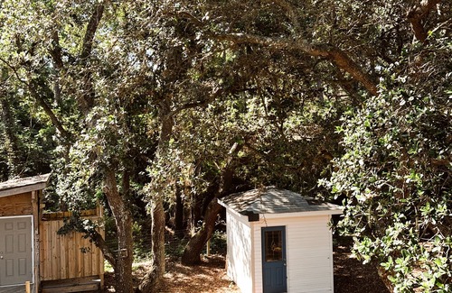 - Front patio with seating to enjoy a cup of coffee in the oak trees