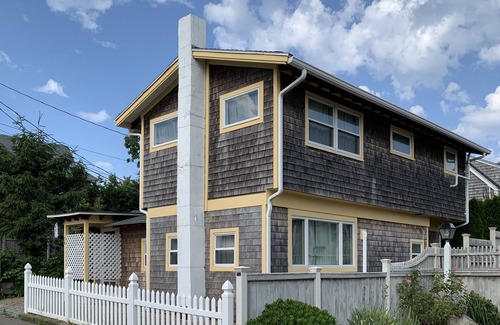 Disfrute de un relajante viaje en ferry a Oak Bluffs y sus pintorescos alrededores. Una vez que finalice su viaje en ferry, ¡estará a unos pasos de su hogar! Sus vacaciones serán inolvidables en esta encantadora cabaña ubicada en la parte trasera de la elegante, encantadora e histórica casa victoriana de color amarillo brillante, que fue construida en la década de 1850. Hablando de vistas al océano ... ¡disfruta los beneficios de tener una vista al mar a unos pasos de tu patio trasero! ¡Estar de vacaciones en Martha’s Vineyard en el corazón del centro de la ciudad en una calle principal tiene sus privilegios! Como la cabaña se encuentra en la calle principal, Kennebec Avenue, se puede ver todo el océano; A solo un tiro de piedra de esta hermosa casa de campo totalmente amueblada, que cuenta con 2 dormitorios completos, 2 baños privados completos (arriba) y 1 tocador (ubicado en el nivel principal). La cabaña duerme cómodamente cuatro personas; dos parejas o una familia de cuatro. Hay un espacio de estacionamiento disponible para usted al lado de la cabaña en la propiedad. Mientras se sienta en el patio trasero tomando su copa de vino favorita, disfrute de una deliciosa comida que ha preparado en la parrilla de gas que está disponible para nuestros huéspedes. La cabaña está disponible para alquiler durante todo el año con aire central y calefacción central para su comodidad.