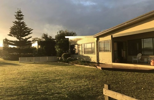 Cottage D’Amour se encuentra en 1024 metros cuadrados de terreno absoluto frente a la playa con 23 metros de frente de playa privada. Está diseñado para tener vista al mar desde cada habitación, sala y comedor. Te despiertas con las olas rompiendo en la playa. Al caminar hacia el jardín delantero se puede ver a los canguros pastando.