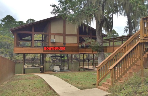Serenity & Luxury le esperan en DOWN By The LAZY RIVER que se encuentra directamente en el Big Cypress Bayou y le proporcionará una inolvidable escapada relajante! Venga a este cálido y detallado River House donde se puede disfrutar de la vista desde el patio de la casa o tomar en los sitios de la sala de estar por encima de la casa del barco. Venga a experimentar el balcón de nivel superior que rodea el boathouse entero para ver el agua tranquila del río, esquiador de jet, barcos, piragüismo, kayak, pesca y tubería. Tanto increíble atención al detalle en toda la casa. Disfrute de los muchos servicios al aire libre, tres resbalones de barco, gran patio cercado, cubierta de pesca / tomar el sol, terraza de café con mesa y sillas sobre el agua, cubierta cubierta con mesa de patio para cenar fuera. Asegúrese de traer su cámara para los espectaculares cipreses y musgo español. Bajar el río es como una escena en la película "The Notebook". Tome una vuelta del río en barco del capitán Ron Swamp Tour, que va justo en frente de nuestra casa. Fácil acceso al lago Caddo, al parque estatal Caddo, al restaurante RiverBend, al restaurante Big Pines, a Shady Glade Marina & Cafe, al mercado de pulgas incierto, a la ciudad de Jefferson (conocida por sus famosas tiendas de antigüedades ya sólo 45 minutos del Casino Shreveport / Bossier. Se convertirá en su hogar lejos del hogar ..... en