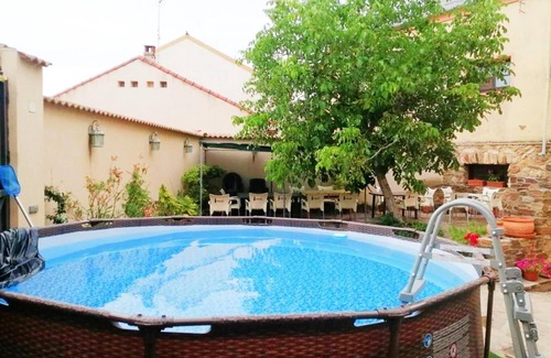 The Country House Atardeceres is located in MIGUELAÑEZ and is the ideal accommodation for a relaxing getaway. The 3-storey property consists of a living room, a well-equipped kitchen, 7 bedrooms and 7 bathrooms and can therefore accommodate 16 people. Additional amenities include high-speed Wi-Fi (suitable for video calls) with a dedicated workspace for home office, a TV, a washing machine as well as children's books and toys. On top of that, a table tennis table and a pool table are also provided for your enjoyment. A baby cot and 2 high chairs are also available. This accommodation does not offer: air conditioning. This vacation rental features a private outdoor area with a pool, garden, terrace, balcony, barbecue, playground, and outdoor shower.