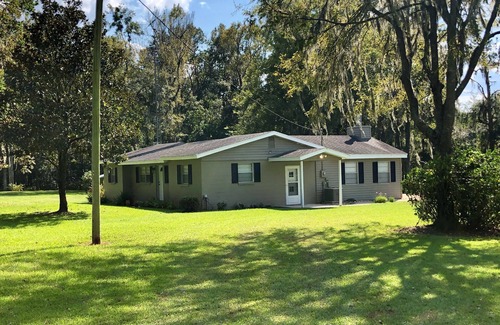 Casa de 3 recámaras, 1 baño recién remodelada. Duerme seis con camas King, Queen y Double. La casa reside en 5 acres bien mantenidos. Hay una cubierta trasera perfecta para relajarse, asar a la parrilla y disfrutar de la puesta de sol de la tarde y una vista de un pequeño estanque ubicado en la propiedad. Se ven con frecuencia ciervos, pavos salvajes y otros animales salvajes. La casa está ubicada a solo 15 minutos de la Universidad de Florida y Santa Fe College, a 10 minutos de la ciudad de Alachua y a 20 minutos de High Springs. Hay una gran variedad de restaurantes y tiendas de comestibles a 15 minutos en coche. Una pequeña tienda de comestibles / conveniencia está a menos de 4 minutos.