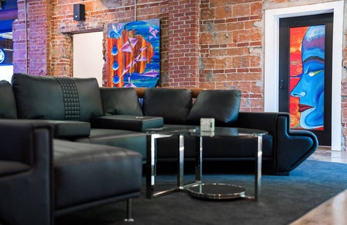 ✔ Lounge Area with Pool Table and Sofa: Take a break in our vibrant lounge, featuring a pool table and ample seating for you to relax, mingle, or enjoy a friendly game in an art-inspired setting.