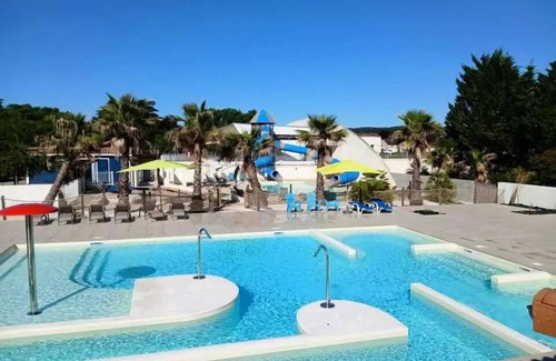 Relájate en la piscina o tómate algo en el porche o patio de este chalet de 36 m². En cuanto al interior, puedes poner a prueba tus habilidades jugando al tenis de mesa, o disfrutar del wifi y de la televisión.