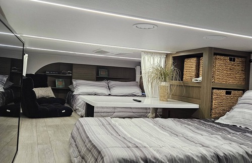 Located in Farmerville, this recreational vehicle is a dream. With 2 bedrooms including 1 king, 1 queen, and 1 twin bed, as well as a cozy living room with a sofa bed, A fully equipt kitchen and also a porch with propane grill and flat top. Guests will find this property marvelous. The bathroom features a refreshing shower, and amenities like AC and heating/ fireplace ensure a nice stay. Set on 75 acres of private wooded property with plenty of trails and a beautiful 2 acre pond. Just a short drive to any boat ramp on beautiful Lake DArbonne. Also surrounding lakes like Poverty Pointe, Bussing, Caney Lake offer amazing fishing opportunities. Farmerville offers several unique resturants for any tastebud. Escape to this serene retreat for a relaxing getaway. We look forward to hosting you at our place. "So Blow in and Stay Awhile!"