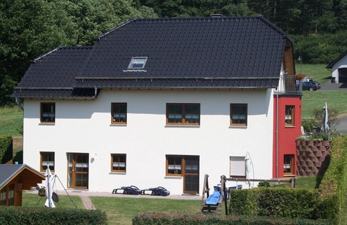Apartamento Ildiko, en las afueras del municipio de Hohenfels-Essingen en el corazón de la región de Eifel volcánica, ofrece un alojamiento agradable, tranquilo y relajante y estancia opción para sus vacaciones. Usted es un salón / comedor con cocina integrada, 2 habitaciones con cama doble, un baño con ducha y WC, una terraza orientada al sur y un trastero y un aparcamiento para su coche disponible. El apartamento está situado en la planta baja de nuestra casa, está orientada al sur y tiene una entrada independiente. Estamos aquí para ayudarle a organizar su programa de libro y va a ayudar con preguntas que pueda tener.