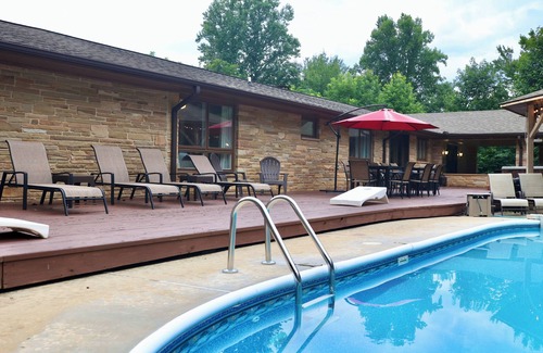 Cozy 4-bedroom house in Robbinsville with AC, WiFi, private pool, and hot tub. | Casa en Robbinsville