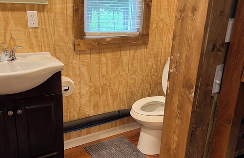Cozy cabin in the woods on our own private lake with WIFI, A/C & Heat. | Cabina en Lake