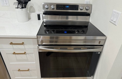 La cocina está equipada con horno, placa de cocina y frigorífico, además de cafetera y tetera, microondas y utensilios de cocina. Conéctate al wifi gratis, o relájate frente a un Smart TV. Y no tendrás que llevarte ropa de más, porque podrás aprovechar la lavadora y la secadora. Otras comodidades de este alojamiento de 1 dormitorio y 1.5 baños incluyen ropa de cama, una tabla de planchar, aire acondicionado y calefacción.