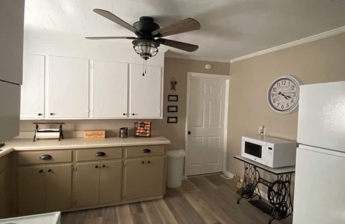 Work, TDY, graduations, traveling nurse, visiting family or just passing through..enjoy the peace and comfort of our stand alone farmhouse, no sharing walls or crowded streets for parking. Relax on our deck and listen to the birds while you start your day or unwind after a busy day. We are 1/2 mile from Freedom Drive and less than three miles from the Enterprise Gate which is open to 24/7 to Fort Novosel. This is the a perfect location, literally a 5-10 minute drive to whatever your needs may be. Our farmhouse has been in our family since 1943. It is cozy, private, safe, peaceful, and recently renovated. Once surrounded by farming land, there are still remnants of the farming past nearby. Although a smaller home, our home is more spacious than you’d expect, there are only two bedrooms which will sleep four people very comfortably and one bathroom with a shower/tub combination. The living room area is spacious and includes a large television for viewing whatever your streaming desires may be. There’s a full kitchen with numerous amenities. The kitchen is open to the dining room area which has a large table with six chairs. A coffee bar provides a Kerrigan