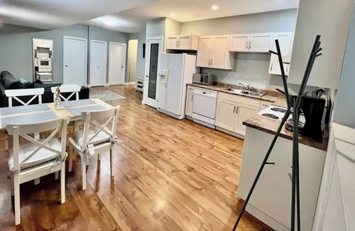 A ground floor basement of a detached home with two bedrooms and a sofa bed. Includes a kitchen, bathroom with bath/shower, bedroom, and living area. There is Netflix and Disney Plus available on the TV. FREE Wifi included.