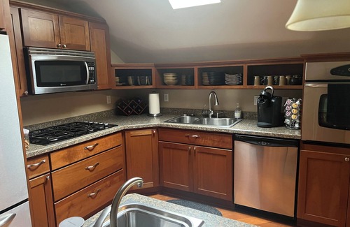 Este alojamiento de 2 dormitorios y 1 baño cuenta con chimenea y aire acondicionado. El cuarto de baño incluye un secador de pelo, toallas y papel higiénico. La cocina está equipada con horno, placa de cocina y frigorífico, además de cafetera y tetera, hervidor eléctrico y máquina de hielo. Y como podrás aprovechar la lavadora y la secadora, no te hará falta llevar mucho equipaje.