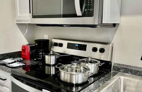 Este alojamiento de 1 dormitorio y 1 baño cuenta con aire acondicionado y escritorio. Disfruta del wifi gratis y de la televisión. El cuarto de baño incluye toallas y papel higiénico. La cocina está equipada con horno, placa de cocina y frigorífico, además de cafetera y tetera, microondas y utensilios de cocina. Y como podrás aprovechar la lavadora y la secadora, no te hará falta llevar mucho equipaje. Otras comodidades incluyen ropa de cama, calefacción y una silla de oficina.