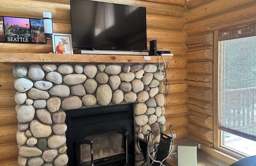 Las habitaciones de Cozy & Quiet cabin for a family disponen de aire acondicionado, chimenea y cafetera y tetera. La cocina está dotada de frigorífico, placa de cocina, microondas y utensilios de cocina. Los baños están equipados con bañera o ducha y secador de pelo.