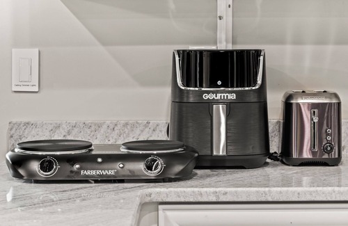 Este alojamiento de 1 dormitorio y 1 baño cuenta con una sala de estar, aire acondicionado y escritorio. El cuarto de baño incluye un secador de pelo, toallas y papel higiénico. La cocina básica está equipada con placa de cocina y frigorífico, además de cafetera y tetera, hervidor eléctrico y microondas. Y como hay una lavandería en los alrededores, no necesitarás llevarte mucho equipaje.