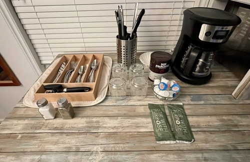 La cocina básica está equipada con frigorífico, además de cafetera y tetera, microondas y utensilios de cocina. El cuarto de baño incluye un secador de pelo, toallas y papel higiénico. Y como hay una lavandería en los alrededores, no necesitarás llevarte mucho equipaje. Otras comodidades incluyen una parrilla, ropa de cama, calefacción y una mesa de comedor.