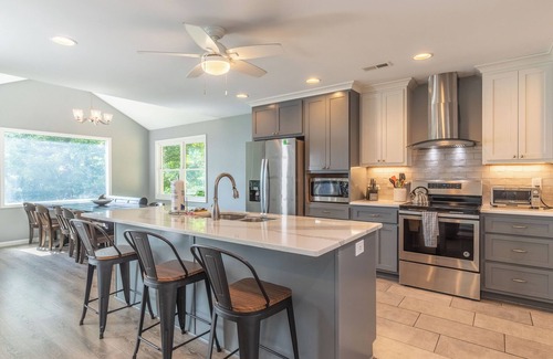 Al instalarte en este alojamiento de 5 dormitorios y 4.5 baños, encontrarás una sala de estar, una zona para barbacoas, chimenea y aire acondicionado. Prepara una comida casera en la cocina, equipada con horno, placa de cocina y frigorífico, además de cafetera y tetera, máquina de hielo y microondas. Y no tendrás que llevarte ropa de más, porque podrás aprovechar la lavadora y la secadora.