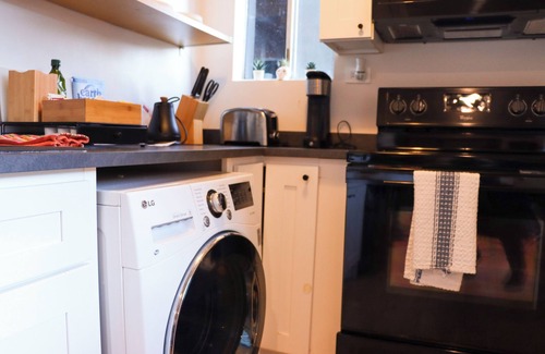 Prepara una comida casera en la cocina, equipada con horno, placa de cocina y frigorífico, además de cafetera y tetera, hervidor eléctrico y microondas. Conéctate al wifi, o relájate frente a un Smart TV. El cuarto de baño incluye un secador de pelo, toallas y papel higiénico. Y no tendrás que llevarte ropa de más, porque podrás aprovechar la lavadora y la secadora. Otras comodidades de este alojamiento de 1 dormitorio y 1 baño incluyen ropa de cama, aire acondicionado y calefacción.