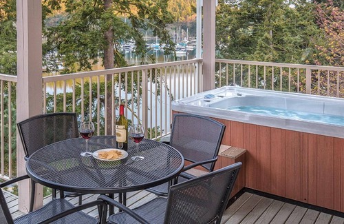 Deer Harbor offers beautiful studio, one-, two- and three-bedroom resort suites which sleep two to six guests and measure between 426 - 1,480. square feet. The studio deluxe cottage offers a king bed and a queen sleeper sofa in the living area and one-bedroom resort suites include a king bed in the master and a queen sleeper sofa in the living area. Plus, they come with a personal hot tub on a private deck and a kitchenette for your convenience. The resort's two-bedroom Presidential Suites accommodate four guests with a king bed in the master and a double bed in the second bedroom. The three-bedroom penthouse includes a king bed in the master, a queen bed in the second room and twin bunk beds (not suitable for adults) in the third bedroom. Both two- and three-bedroom suites include a full kitchen and dining area and a beautiful deck with a personal hot tub.