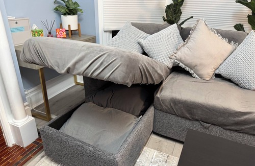 Prepara una comida casera en la cocina, equipada con horno, placa de cocina y frigorífico, además de cafetera y tetera, hervidor eléctrico y máquina de hielo. Disfruta del wifi gratis y de la televisión. El cuarto de baño incluye un secador de pelo, toallas y papel higiénico. Y como podrás aprovechar la lavadora y la secadora, no te hará falta llevar mucho equipaje. Otras comodidades de este alojamiento de 3 dormitorios y 1.5 baños incluyen ropa de cama, un escritorio, una tabla de planchar y calefacción.