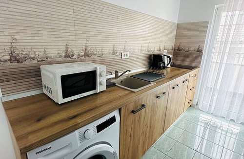 Delightful 3-bedroom apartment with AC in Eforie Nord Se encuentra en Eforie Nord. Delightful 3-bedroom apartment with AC in Eforie Nord ofrece alojamiento, con Cocina, Lavandería, Aire acondicionado, Entre otras comodidades. Estas características Apartamento Cocina, Lavandería, Aire acondicionado, Para que su estadía sea cómoda.