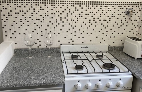 contamos con diván cama para dos personas. cocina integrada. con todo lo necesario para cocinar.