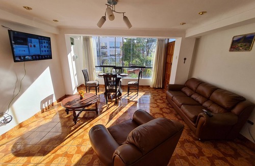 Si desea tener una estancia corta o larga en Cusco Ciudad cerca a parques de niños rodeado de jardines con una iluminación natural durante el día y si trae a su mascota es una buena alternativa para su estancia con nosotros estamos ubicados en una zona estratégica cerca a av. Principal 28 julio distrito Wanchaq a pasos un mercado de la zona con productos primera necesidad y mucho más, el apartamento comprende de:
