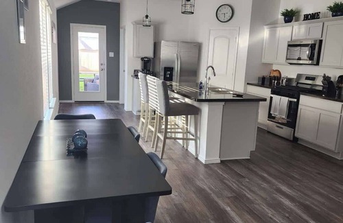 ¡No busques más! ¡No querrás perderte esta casa de vacaciones en Northside! Hermosa casa completamente nueva, encontrarás comodidades acogedoras y modernas, un hermoso porche delantero y un patio trasero. Convenientemente ubicado a 17 minutos del Aeropuerto Intercontinental Bush, a 16 minutos de Six Flags y otros parques acuáticos, una vibrante escena artística y muchos restaurantes y tiendas locales.