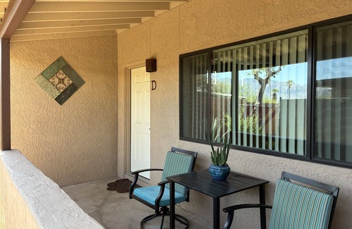 Desert Morada es nuestra propiedad más nueva y es uno de los 12 dúplex con jardín ubicados alrededor de una refrescante piscina. Todas las unidades tienen patios traseros cercados, lavadoras y secadoras, internet wifi y televisión por cable. Casita D está recientemente renovada con dos dormitorios y un baño completo con bañera. Cada habitación tiene una cama king size. Mucha luz natural entra por las nuevas ventanas. El patio trasero cercado da a árboles de mezquite, algunos cítricos y paisajes desérticos. Una propiedad cerrada, es segura con estacionamiento pavimentado en una calle tranquila. Cuidadosamente amueblado, todas las cocinas y baños nuevos. Ropa de cama y vajilla / utensilios de cocina incluidos. Nuevos pisos de baldosas de madera en todo. Convenientemente ubicado, a diez minutos en automóvil del centro comercial Tucson Mall y de excelentes restaurantes. No muy lejos de la Universidad de Arizona y los hospitales del área.