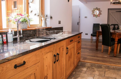 Dingle Cottage is a well-appointed wood clad cottage that can be found resting in the village of Snailbeach near Minsterley, Shropshire. Home to five bedrooms including two doubles, a further ground-floor double, a twin and a single, this dwelling can sleep a total of nine guests. The first floor is complete with a bathroom, whilst the ground floor features a shower room. The interior also boasts a kitchen/dining room and a utility room, as well as a sitting room and a snug with woodburning stoves. Outside there is a garden with a lawned and a patio featuring a barbecue, outdoor seating area and a hot tub. There are kennels available for pets outside, as well as off-road parking. Dingle Cottage offers the ultimate setting for a family holiday to Shropshire.