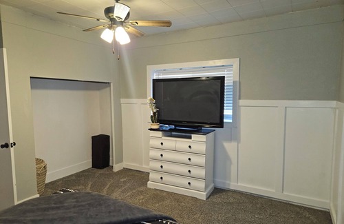 Relax with the family at this peaceful hide a way in Dingle Idaho. Just 7 miles from North Beach of Bear Lake. Large lot with lots of parking and space for larger groups. The home and yard are surrounded by large mature trees. Inside this beautiful 1900s farmhouse is 4 large bedrooms and 2 bathrooms. 2 spacious family rooms, and lots of space inside the house and property to play games and create memories. Washer and dryer on site. Just 7 miles from North Beach at Bear Lake