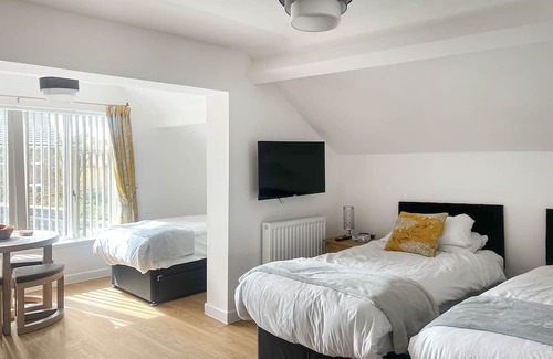 Bedroom area: With double bed, single bed and Smart TV.