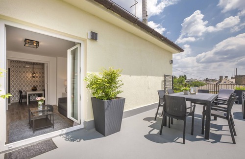 ¡Disfruta de la gran terraza de tu nuevo apartamento cerca del City Park! Se encuentra en Istvanmezo. ¡Disfruta de la gran terraza de tu nuevo apartamento cerca del City Park! ofrece alojamiento, con Silla de ruedas accesible, Instalaciones de bienestar, Internet, Entre otras comodidades. Estas características Apartamento Silla de ruedas accesible, Instalaciones de bienestar, Internet, Para que su estadía sea cómoda.
