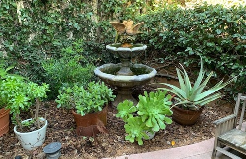 Fuera de la puerta de vidrio hay un patio ajardinado exuberante y espacioso, completo con una parrilla de gas, mesa y sillas y un columpio encantador. Compartir