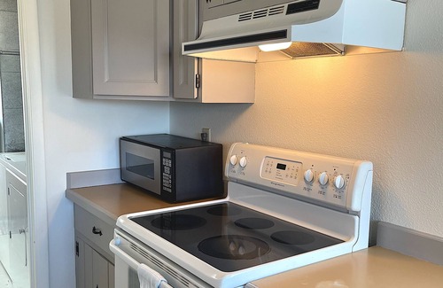 Este alojamiento de 1 dormitorio y 1 baño cuenta con una sala de estar, un sofá cama, una zona para barbacoas y aire acondicionado. Conéctate al wifi, o relájate frente a televisión. El cuarto de baño incluye un secador de pelo y toallas. La cocina está equipada con horno, placa de cocina y frigorífico, además de cafetera y tetera, microondas y tostadora. Y gracias a la lavadora y la secadora, podrás viajar con poco equipaje. Otras comodidades incluyen ropa de cama, calefacción y una mesa de comedor.