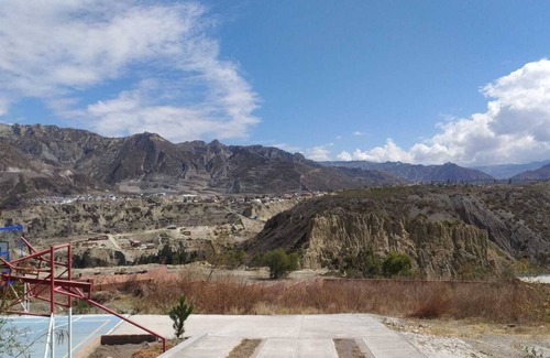 El Mal de Altura de El Alto o La Paz te afecta? Ven a este Santuario Natural Cálido y Cómodo lejos de la polución y el ruido. El clima y la vista panorámica desde tu cama o desde el living a través de fachadas flotantes (Pared de vidrio del techo al piso) hacia la Muela del Diablo, La Paz, El Alto, Mallasa, Jupapina y los valles te encantarán. La cocina con todo lo necesario y a la mano será tu refugio; y si gustas, te traeremos de nuestro Mini Market vinos, bebidas o artículos, a precios más bajos que en la zona, para que tú prepares tus comidas. Podrás jugar básquet, voleibol, futsal, y otros deportes en la cancha. Si gustas, harás eventos ya sea al aire libre (100 personas) o en un Salón de Eventos de lujo para 700 personas, a poca distancia. Estamos prestos a coordinar tus actividades en INGLÉS, FRANCÉS, PORTUGUÉS, ALEMÁN, ITALIANO Y ALGO DE RUSO. También podemos darte clases de Idiomas, Baile, Karaoke y deportes. El Valle de la Luna y comida típica de toda Bolivia están al paso.