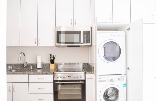 Este alojamiento de 1 dormitorio y 1 baño cuenta con una sala de estar, aire acondicionado y escritorio. El cuarto de baño incluye un secador de pelo y toallas. Prepara una comida casera en la cocina, equipada con horno, placa de cocina y frigorífico, además de cafetera y tetera, microondas y utensilios de cocina. Y como podrás aprovechar la lavadora y la secadora, no te hará falta llevar mucho equipaje.