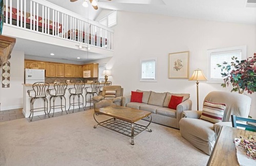 Duerme 8 - (K, Q, 4T) ¡Diversión para todos! Venga a disfrutar de un condominio de 2 dormitorios y 2 baños con un espacioso loft. Este condominio se encuentra en el desarrollo de Echota, lo que significa un refugio pacífico. El condominio puede alojar cómodamente hasta 8 personas con un rey en el dormitorio principal, una reina en el dormitorio de invitados y dos camas individuales con nido en el área de loft. Los huéspedes de esta unidad disfrutan del uso de una cocina totalmente equipada, una sala de estar decorada de manera cómoda, con TV y reproductor de DVD, lavadora y secadora, aire acondicionado, terraza cubierta con estanque y vista a la montaña a lo lejos, ¡y mucho más!