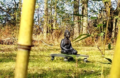 Acabo de terminar la moderna cabaña ecológica de 1800 pies cuadrados construida por un pequeño lago, nuestras plantaciones de bambú y vistas de 180 acres de cultivos.