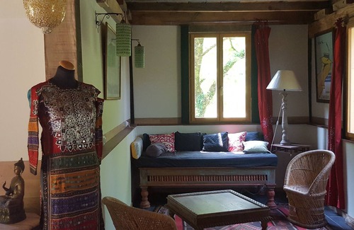 La casa tiene una superficie de 55 m² y tiene un dormitorio con una cama grande de 160 * 200m, una sala de estar, un baño grande y una cocina americana al aire libre. Este último está equipado con hervidor de agua, cafetera espresso, placa de inducción y barbacoa. La decoración es ecléctica y cómoda, inspirada en viajes de larga distancia.