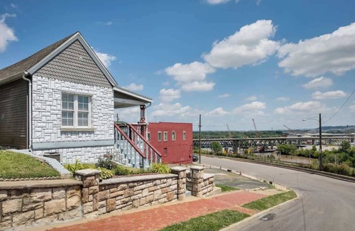 Esta es una casa original de "Strawberry Hill", con vista al río Kansas, y rodeada por destellos de una torre de la iglesia.