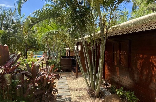 del aeropuerto para llegar a la cabaña de madera criolla,