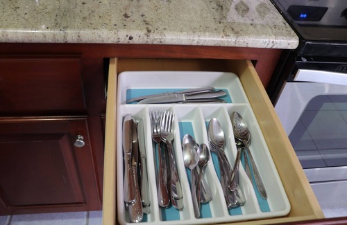 Cocina: completamente equipada. lavavajillas, estufa / estufa / horno, refrigerador completo con máquina de hielo, microondas. Asientos para cuatro. Servicio para ocho.