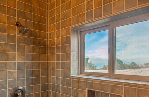 Esta espaciosa casa de 1560 pies cuadrados tiene capacidad para seis personas con dos habitaciones y una biblioteca abierta con un sofá cama. El dormitorio principal cuenta con una cama Cal King con colchón nuevo, Smart TV, vestidor y una ducha con azulejos para dos. El otro dormitorio tiene una cama queen y ducha de azulejos con bañera. Las habitaciones están en lados opuestos de la casa, y cada una tiene su propia terraza. La chimenea de gas de mármol, el sistema de sonido en cada habitación y las luces con atenuadores en toda la casa crean el ambiente para la felicidad absoluta. Hay cinco cubiertas separadas, más de 900 pies cuadrados en total. ¡También puede relajarse en el NUEVO spa privado muy privado para seis personas, justo afuera del control deslizante del dormitorio principal y mirar las estrellas o disfrutar de la vista y los sonidos del océano!